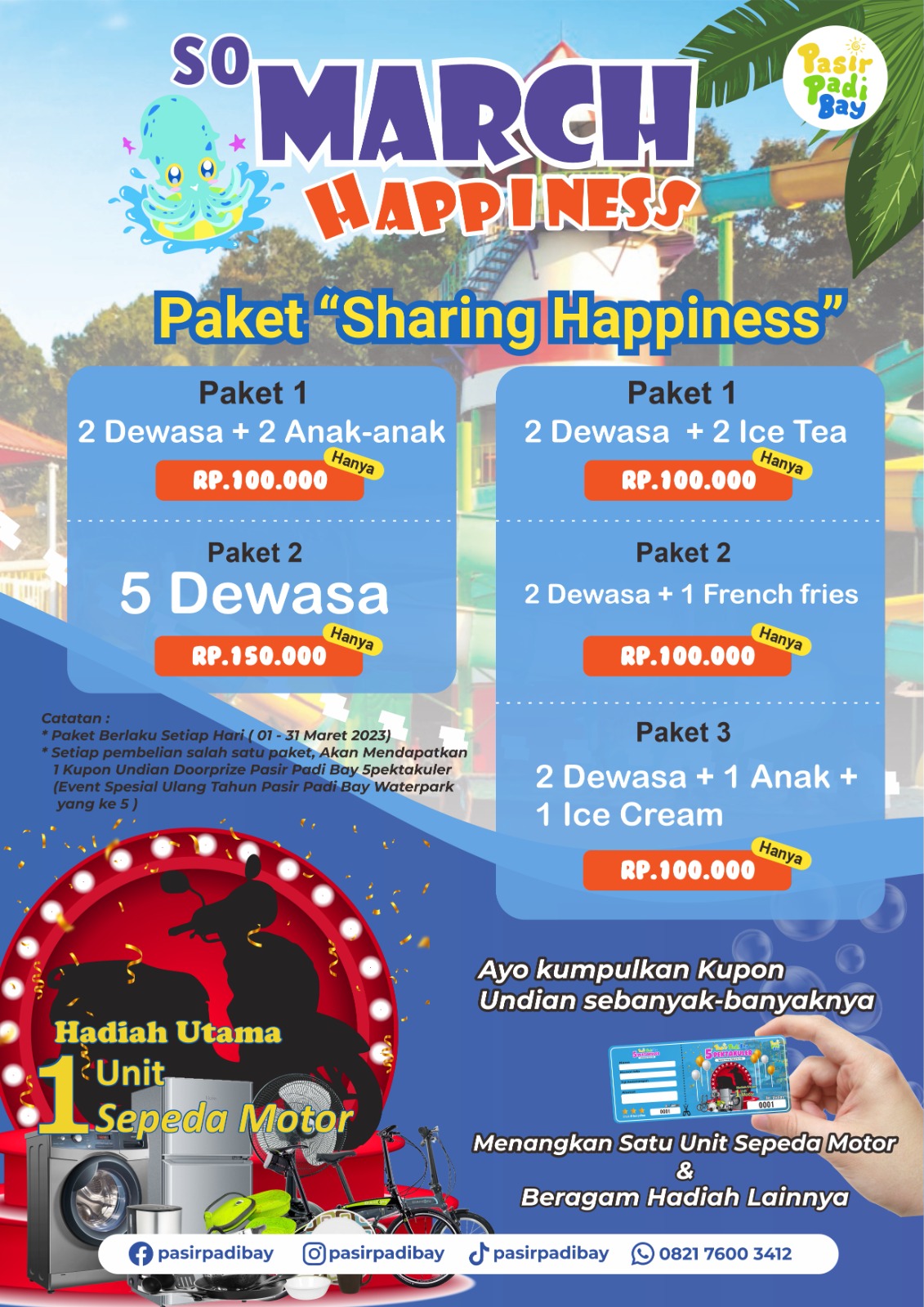 Pasir Padi Bay Waterpark Mau Bagi 1 unit motor dan beragam Hadiah Menarik buat kalian yang beruntung…